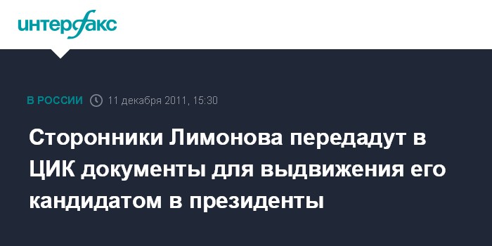 Сторонники Лимонова передадут в ЦИК документы для выдвижения его кандидатом в президенты