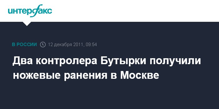Москва. 12 декабря. INTERFAX.RU - Двое сотрудников Бутырского следственного изолятора (СИЗО-2) госпитализированы с ножевыми ранениями, полученными на юге Москвы при невыясненных обстоятельствах, сообщил "Интерфаксу" в понедельник источник в правоохранительных органах.