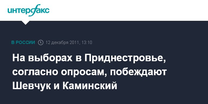Тирасполь. 12 декабря. INTERFAX.RU - Данные exit-poll на президентских выборах в непризнанной Приднестровской республике подтверждают предварительную информацию Центризбиркома ПМР о том, что кандидат Евгений Шевчук является лидером голосования, сообщает информационно-аналитический центр "SOCIUMinform".