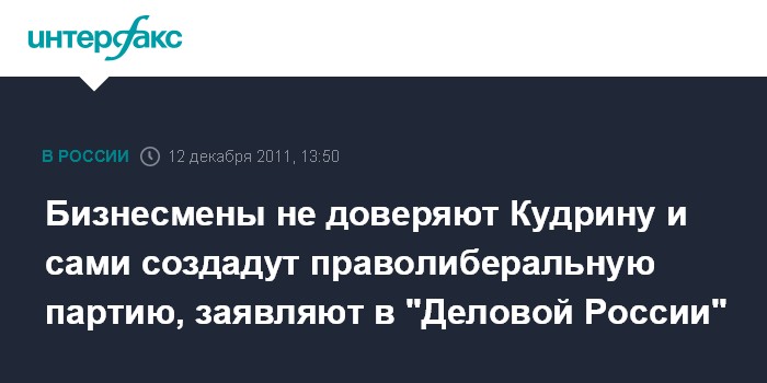 "Поэтому бизнес - естественная основа любого правого проекта - ему не доверяет. Мы сами создадим праволиберальную партию, а пригласим ли мы в ее руководство Кудрина - большой вопрос", - сказал председатель "Деловой России".