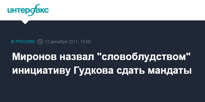 Гудков, выдвинув предложение, заметил, что он при этом понимал - реализовать его будет крайне сложно. Миронов в свою очередь заявил, что либо решение (о сдаче мандатов) надо принимать немедленно, либо перестать говорить на эту тему.