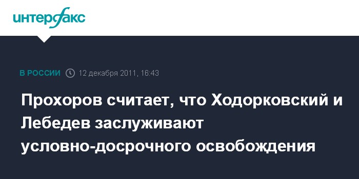"Закон - плохой или хороший - мы его обязаны соблюдать. Неважно, какой суд, но он принял решение. Я специально изучал вместе с юристами процедуру, и я считаю, что оснований для неосвобождения условно-досрочно Ходорковского и Лебедева нет никаких", - сказал Прохоров на пресс-конференции в центральном офисе "Интерфакса".