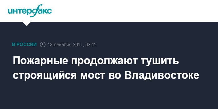 Владивосток. 13 декабря. ИНТЕРФАКС-ДАЛЬНИЙ ВОСТОК - Пожарные Владивостока проводят проливку конструкций строящегося моста через бухту Золотой Рог, на котором произошел крупный пожар.