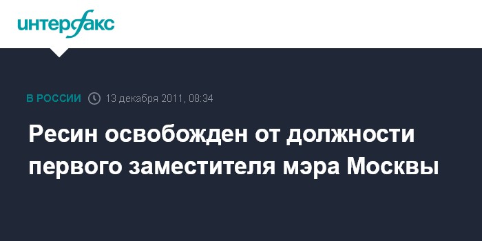 Ресин освобожден от должности первого заместителя мэра Москвы