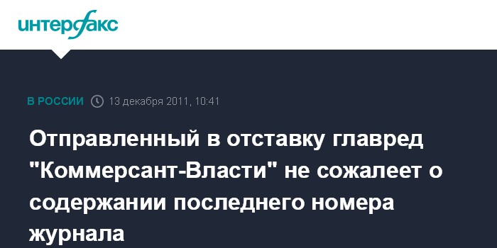 Отправленный в отставку главред "Коммерсант-Власти" не сожалеет о содержании последнего номера журнала