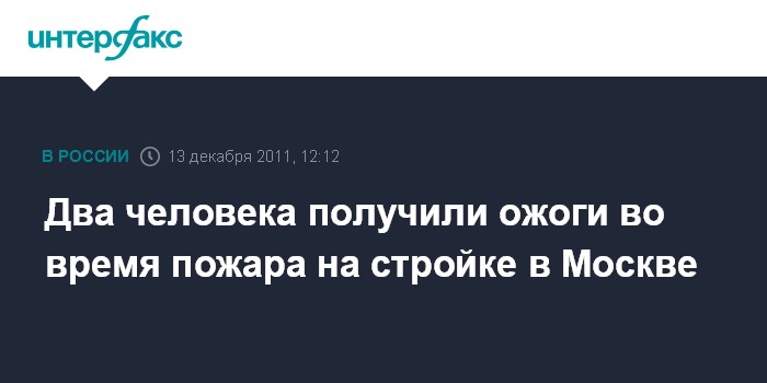 Москва. 13 декабря. INTERFAX.RU - Два человека получили травмы в результате пожара в строящемся офисном центре на юго-западе Москвы, сообщил "Интерфаксу" источник в правоохранительных органах.
