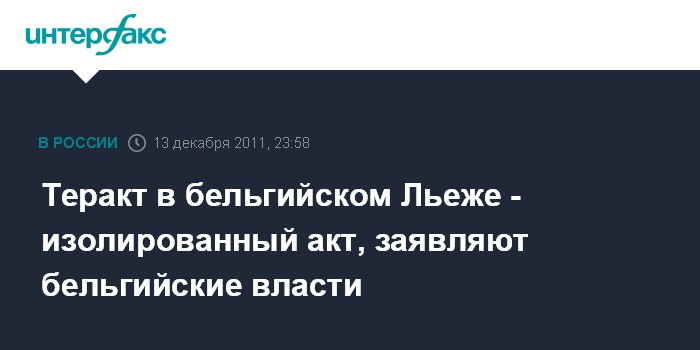 Теракт в бельгийском Льеже - изолированный акт, заявляют бельгийские власти