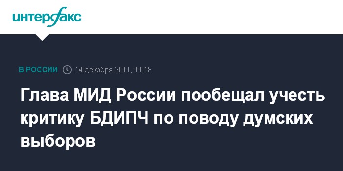 Глава МИД России пообещал учесть критику БДИПЧ по поводу думских выборов