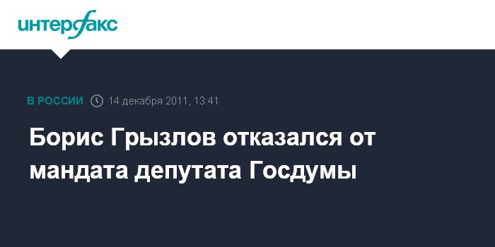Москва. 14 декабря. INTERFAX.RU - Председатель Госдумы Борис Грызлов в среду сообщил, что отказывается от депутатского мандата.
