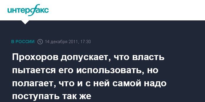 Прохоров допускает, что власть пытается его использовать, но полагает, что и с ней самой надо поступать так же