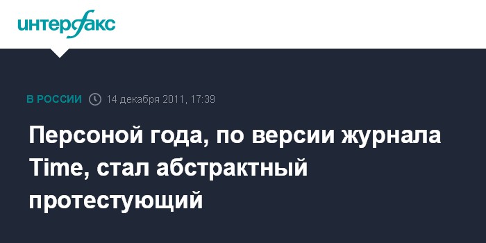 Лондон. 14 декабря. INTERFAX.RU - Абстрактный "Участник акций протеста" стал персоной года по версии британского журнала Time.