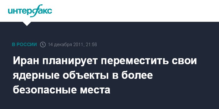 Тегеран. 14 декабря. INTERFAX.RU - Иранские установки по обогащению урана могут быть перемещены в другие места, сообщает в среду иранское агентство "Мехр".