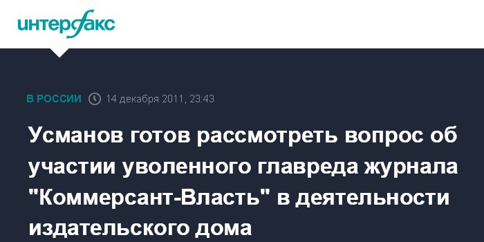 Усманов готов рассмотреть вопрос об участии уволенного главреда журнала "Коммерсант-Власть" в деятельности издательского дома