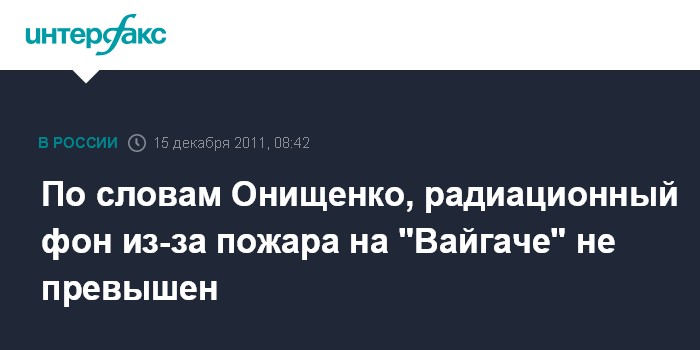 По словам Онищенко, радиационный фон из-за пожара на "Вайгаче" не превышен