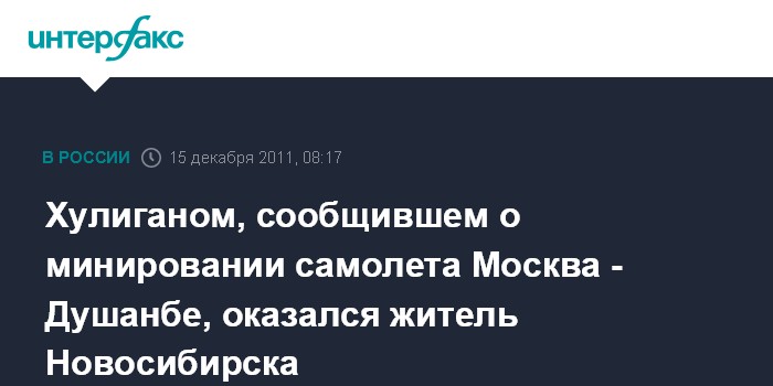 Хулиганом, сообщившем о минировании самолета Москва - Душанбе, оказался житель Новосибирска