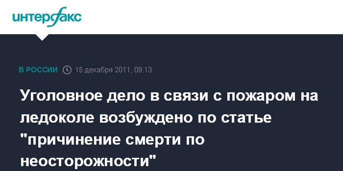 Москва. 15 декабря. INTERFAX.RU - По факту пожара на атомоходе "Вайгач" в Красноярском крае возбуждено уголовное дело, сообщил "Интерфаксу" официальный представитель СК РФ Владимир Маркин.