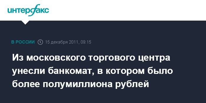 "Ночью в среду четверо неизвестных украли банкомат из тамбура торгового центра по Мячковскому бульвару и скрылись", - сказал собеседник агентства.