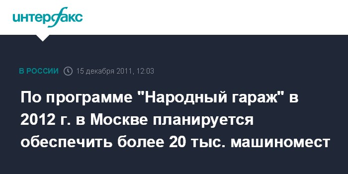 По программе "Народный гараж" в 2012 г. в Москве планируется обеспечить более 20 тыс. машиномест