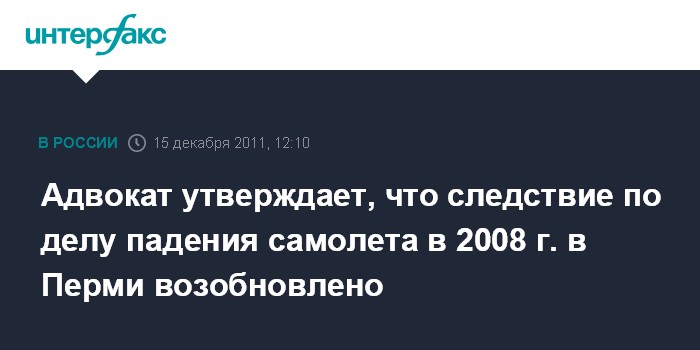 Адвокат утверждает, что следствие по делу падения самолета в 2008 г. в Перми возобновлено