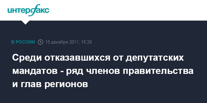 Москва. 15 декабря. INTERFAX.RU - Среди тех, кто отказался от мандата депутата Госдумы по списку "Единой России", есть немало известных людей.