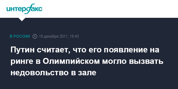 Путин считает, что его появление на ринге в Олимпийском могло вызвать недовольство в зале