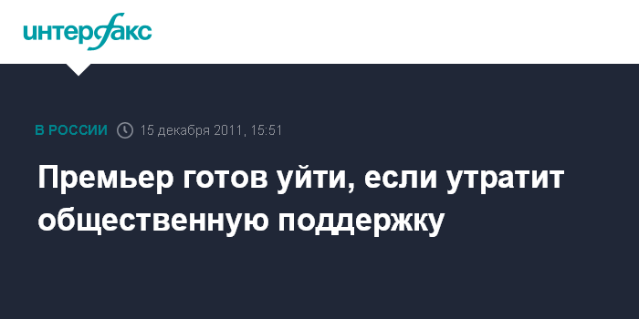 Москва. 15 декабря. INTERFAX.RU - Премьер РФ Владимир Путин заявил, что уйдет из руководства страны, как только почувствует, что лишается народной поддержки.