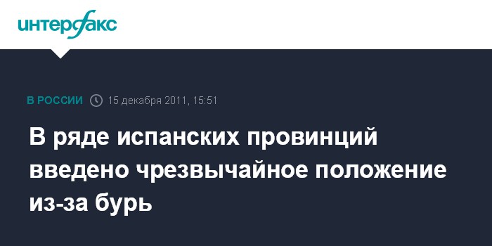 Мадрид. 15 декабря. INTERFAX.RU - В 16 испанских провинциях введено чрезвычайное положение из-за бурь и сильных ветров, сообщает в четверг испанская государственная метеорологическая служба Aemet.
