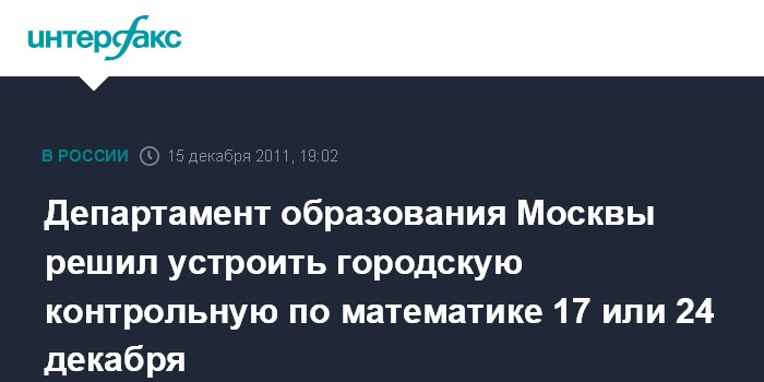 Департамент образования Москвы решил устроить городскую контрольную по математике 17 или 24 декабря