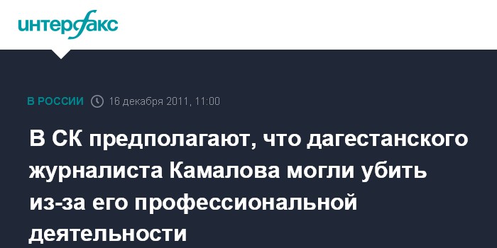 Москва. 16 декабря. INTERFAX.RU - Убийство журналиста Хаджимурада Камалова в Дагестане может быть связано с его творческой деятельностью, сообщили в Следственном комитете РФ.