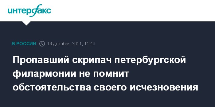 Пропавший скрипач петербургской филармонии не помнит обстоятельства своего исчезновения