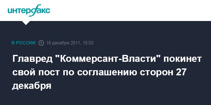 Главред "Коммерсант-Власти" покинет свой пост по соглашению сторон 27 декабря