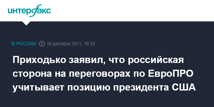 Приходько заявил, что российская сторона на переговорах по ЕвроПРО учитывает позицию президента США