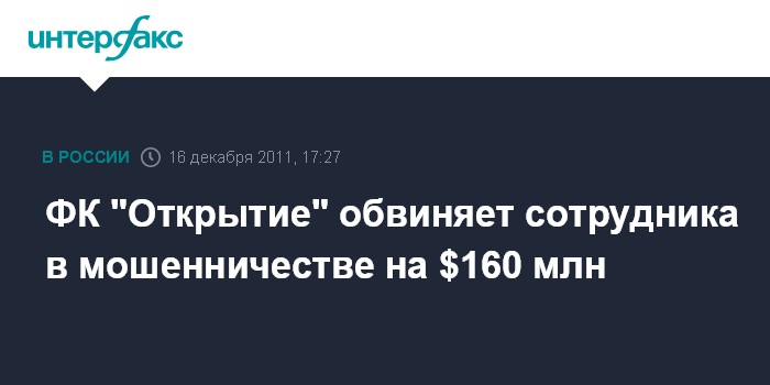 ФК "Открытие" обвиняет сотрудника в мошенничестве на $160 млн