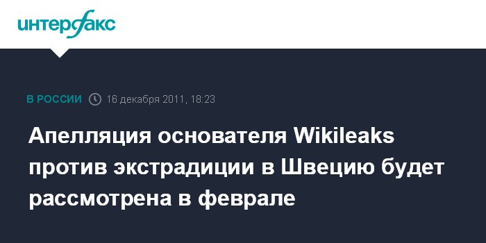 Апелляция основателя Wikileaks против экстрадиции в Швецию будет рассмотрена в феврале