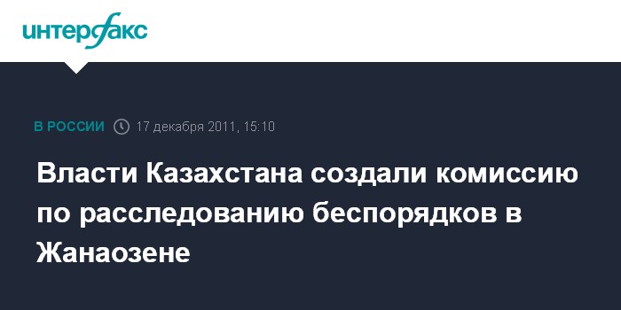 Москва. 17 декабря. INTERFAX.RU - Премьер-министр Казахстана Карим Масимов сообщает, что президент республики Нурсултан Назарбаев сформировал правительственную комиссию, которая разберется в событиях в Жанаозене. "Главой государства создана правительственная комиссия во главе с Умирзаком Шукеевым по вопросу Жанаозеня", - написал К.Масимов в субботу в своем твиттере.