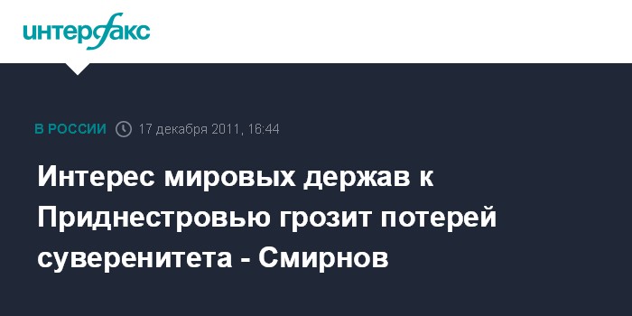 Интерес мировых держав к Приднестровью грозит потерей суверенитета - Смирнов