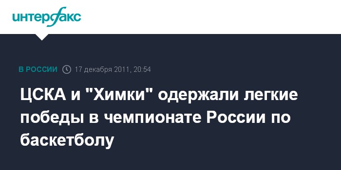 ЦСКА и "Химки" одержали легкие победы в чемпионате России по баскетболу