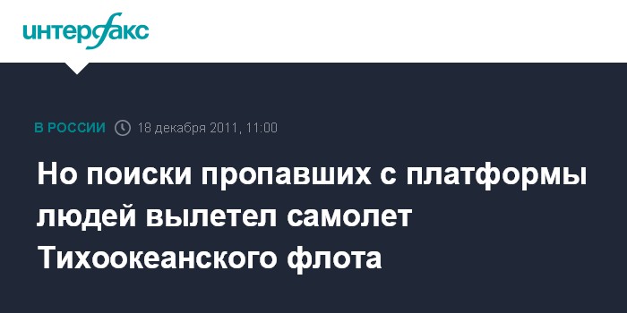 Но поиски пропавших с платформы людей вылетел самолет Тихоокеанского флота