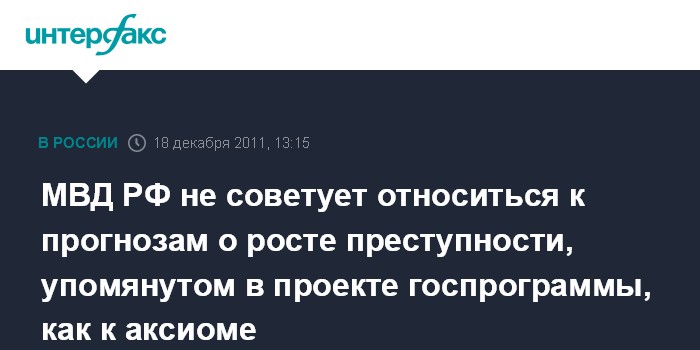МВД РФ не советует относиться к прогнозам о росте преступности, упомянутом в проекте госпрограммы, как к аксиоме
