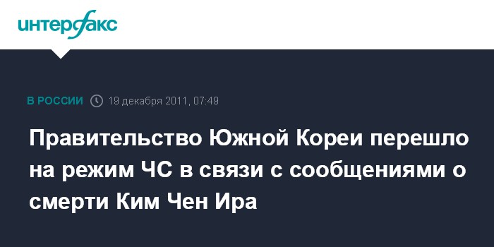 Правительство Южной Кореи перешло на режим ЧС в связи с сообщениями о смерти Ким Чен Ира