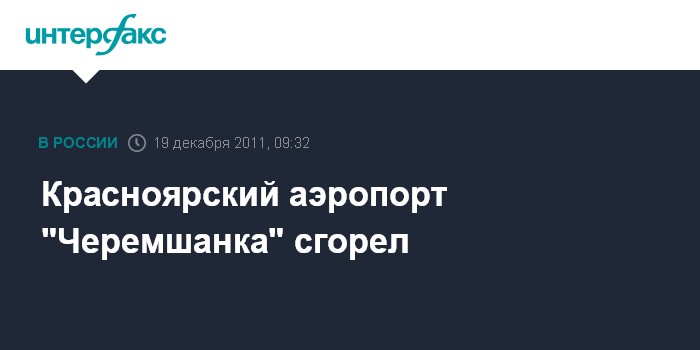 Новосибирск. 19 декабря. INTERFAX.RU - Здание аэровокзала "Черемшанка" под Красноярском в результате пожара сгорело полностью, сообщила агентству "Интерфакс-Сибирь" старший помощник Западно-Сибирского транспортного прокурора Наталия Криницкая.