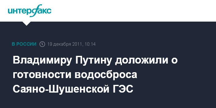 Владимиру Путину доложили о готовности водосброса Саяно-Шушенской ГЭС