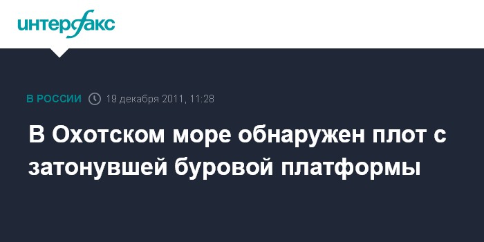 В Охотском море обнаружен плот с затонувшей буровой платформы