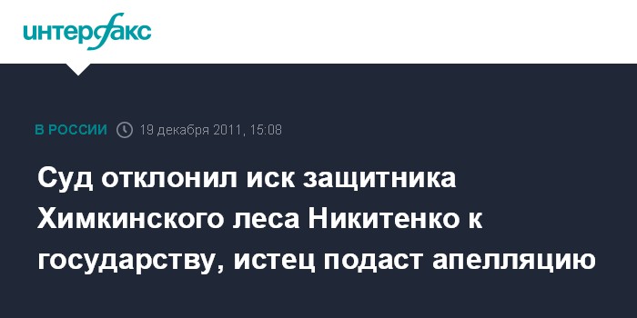 Суд отклонил иск защитника Химкинского леса Никитенко к государству, истец подаст апелляцию