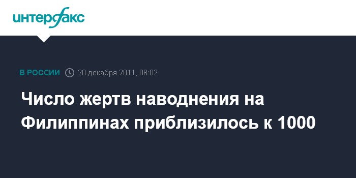 Лондон. 20 декабря. INTERFAX.RU - На Филиппинах жертвами наводнения, вызванного тропическим тайфуном, стали 957 человек, еще пропавшими без вести еще числятся 49 человек, передает Би-би-си.