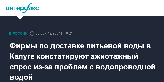 Москва. 20 декабря. INTERFAX.RU – Компании по доставке бутилированной питьевой воды в Калуге констатируют повышенный спрос на поставляемую ими продукцию и связывают его с появившимся в ряде районов города неприятного запаха у водопроводной воды.
