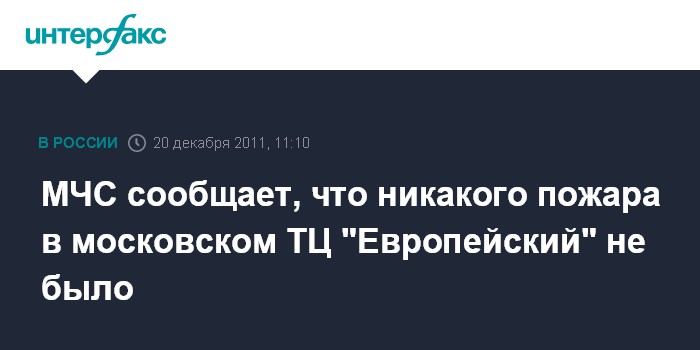МЧС сообщает, что никакого пожара в московском ТЦ "Европейский" не было