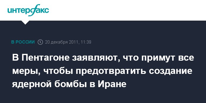 В Пентагоне заявляют, что примут все меры, чтобы предотвратить создание ядерной бомбы в Иране