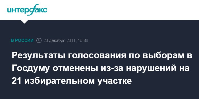 Результаты голосования по выборам в Госдуму отменены из-за нарушений на 21 избирательном участке