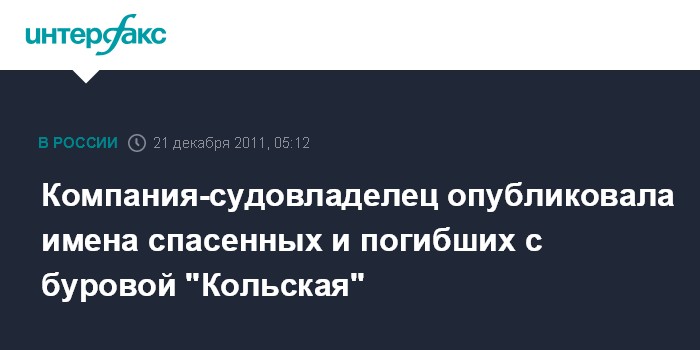 Компания-судовладелец опубликовала имена спасенных и погибших с буровой "Кольская"